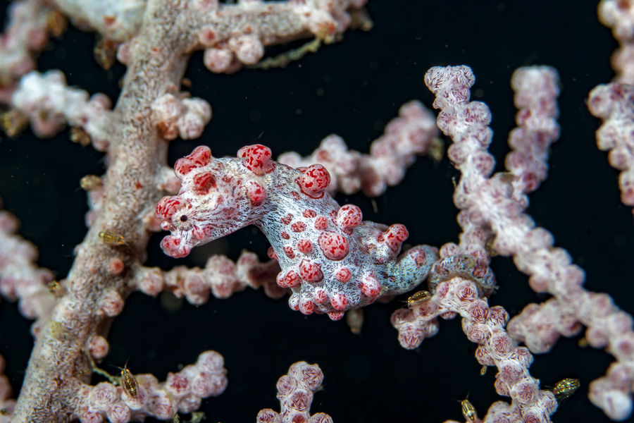 Jacks, barracuda, Napoleon wrasse, trevally, and bumphead parrotfish are seen on many dives. Pygmy seahorses are found at most dive sites, along with a good variety of nudibranchs. Macro diving at the piers is excellent. You will also see lots of juvenile fish such as batfish, angelfish, butterflyfish, barramundi cod, parrotfish, etc.