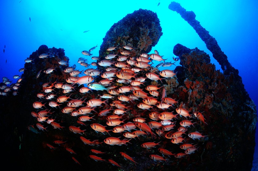 The wrecks are covered in colorful corals and teem with marine life. Divers regularly encounter grunts, squirrelfish, cobia, French and gray angelfish, and goliath grouper. Stingrays, sea turtles, and sharks are also common sightings throughout the wreck park.