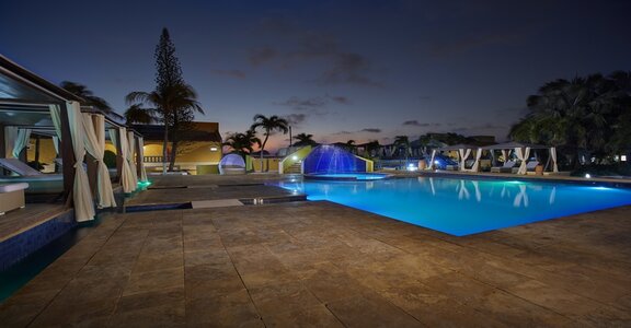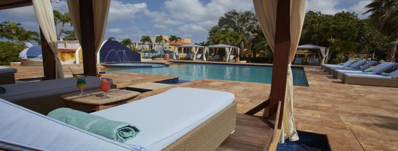 The resort is only 2.6 km away from the Flamingo International Airport. Exit the airport and turn right onto the main island road. At the first intersection, turn left, then take a sharp right turn at the end of the road. Continue until you see our resort entrance on your left.
