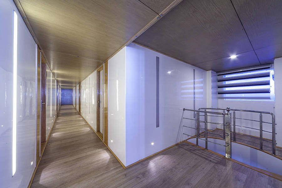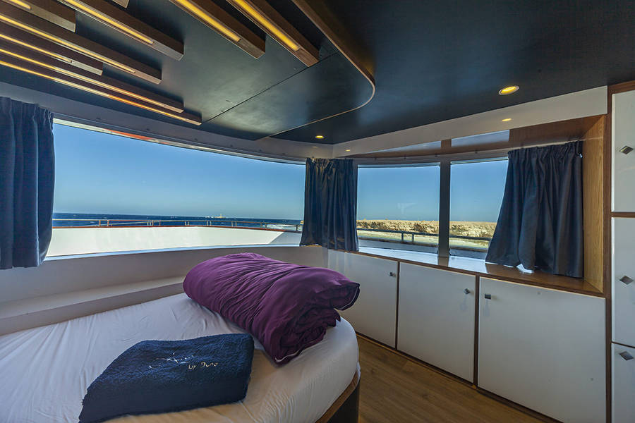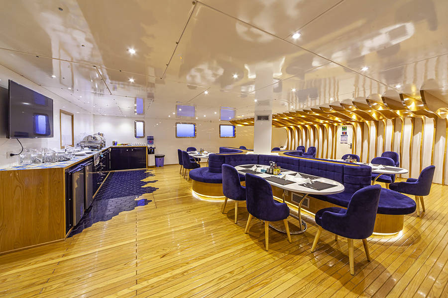 The Dune Silky can accommodate a total of 26 people in its 13 cabins, 9 of which are located on the main deck while the rest are located on the upper deck. The rooms are outfitted with 1.40m x 2m beds, and come complete with a private bathroom and mini bar.