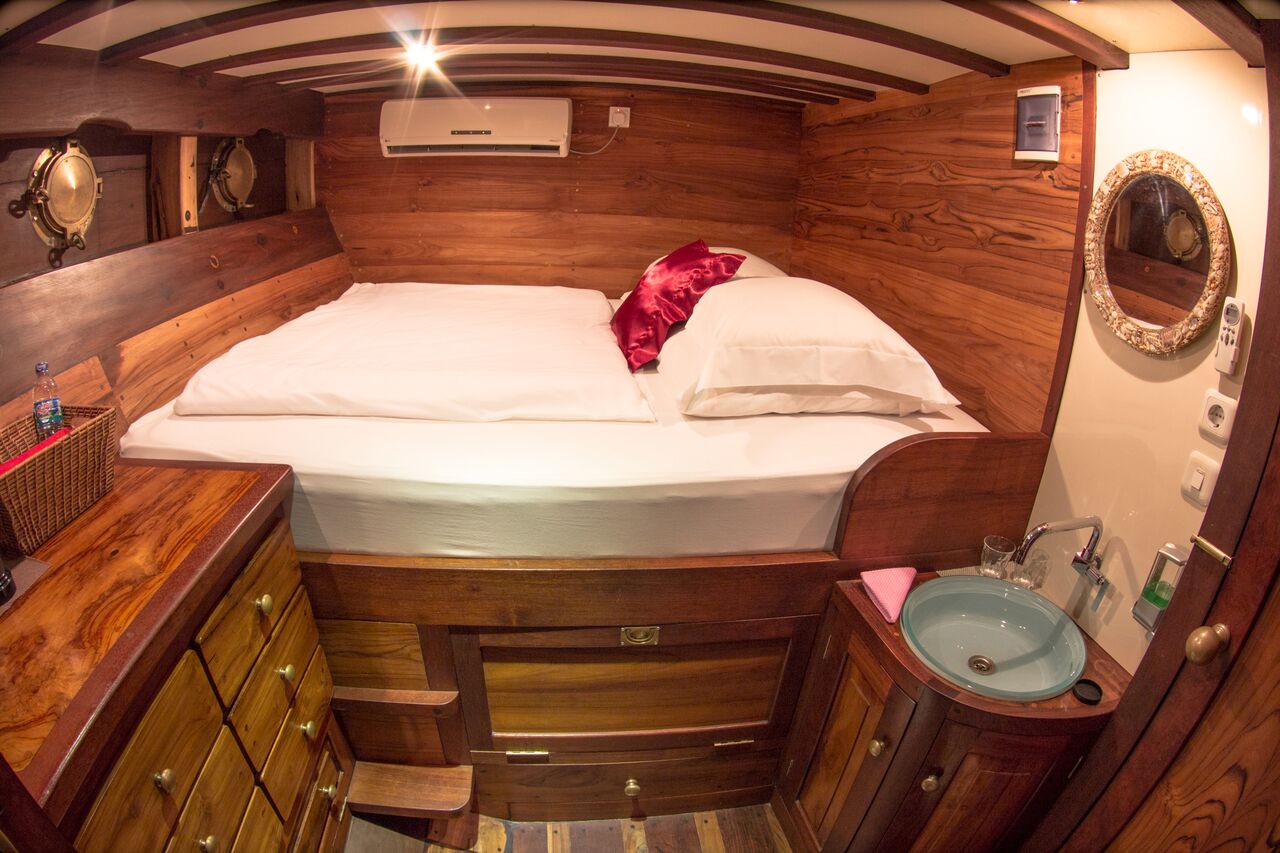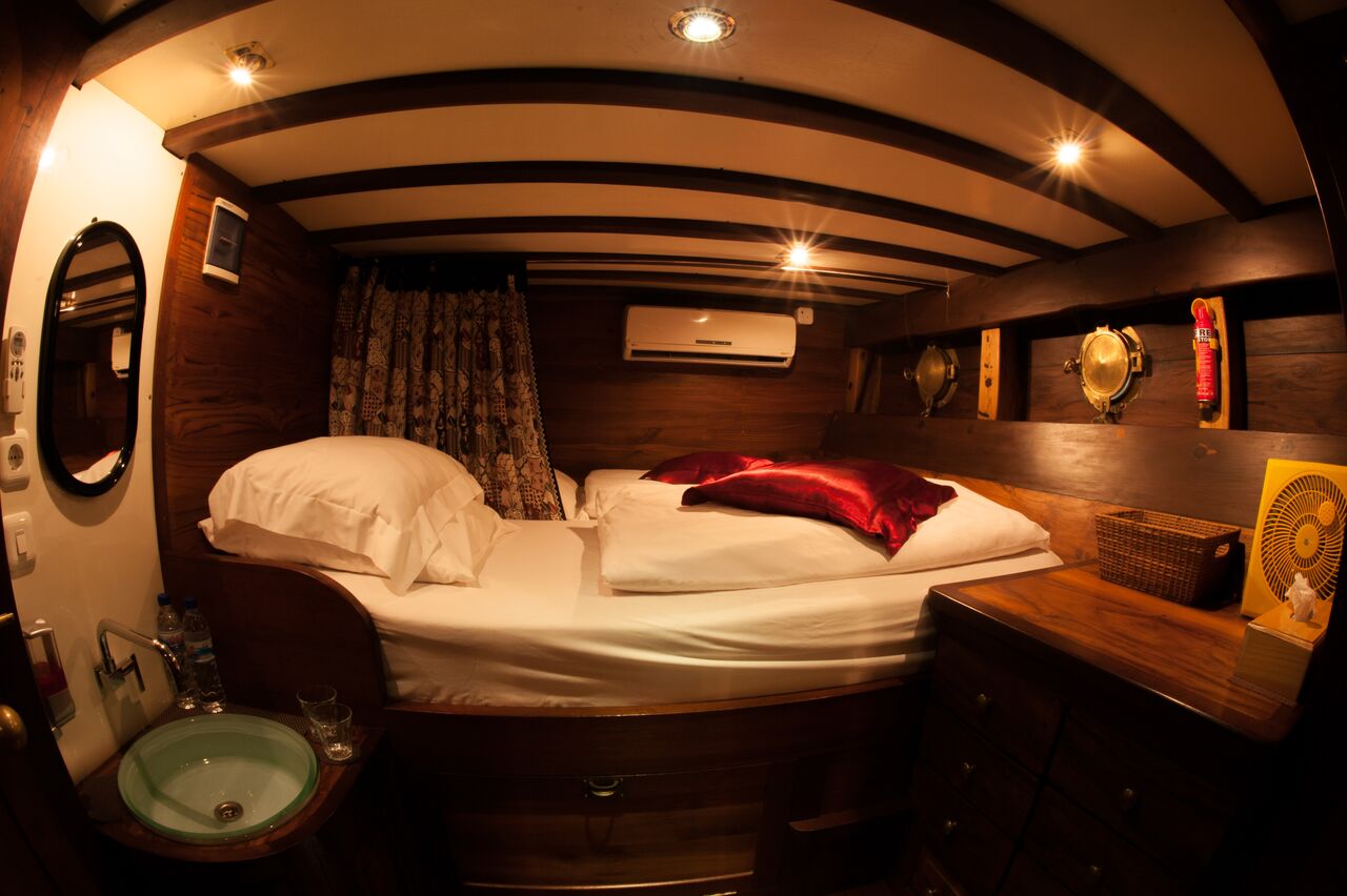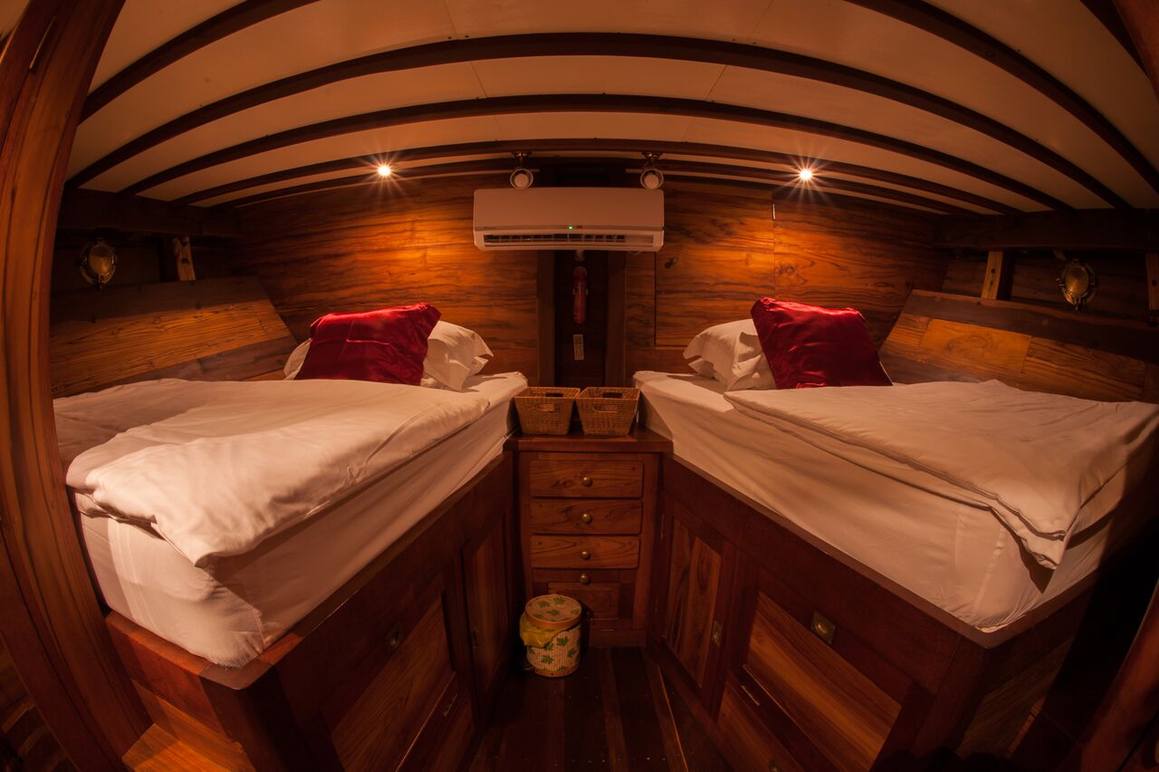 EcoPro Duyung Baru features four well-appointed cabins, each designed to provide comfort and tranquility for guests during their liveaboard experience. The cabins are equipped with individual air conditioning units, ensuring a pleasant environment in the tropical setting of Komodo, Indonesia. The vessel's commitment to an intimate experience is reflected in the limited occupancy of eight guests, allowing for personalized service and a sense of exclusivity.