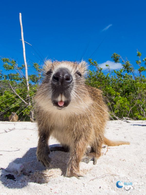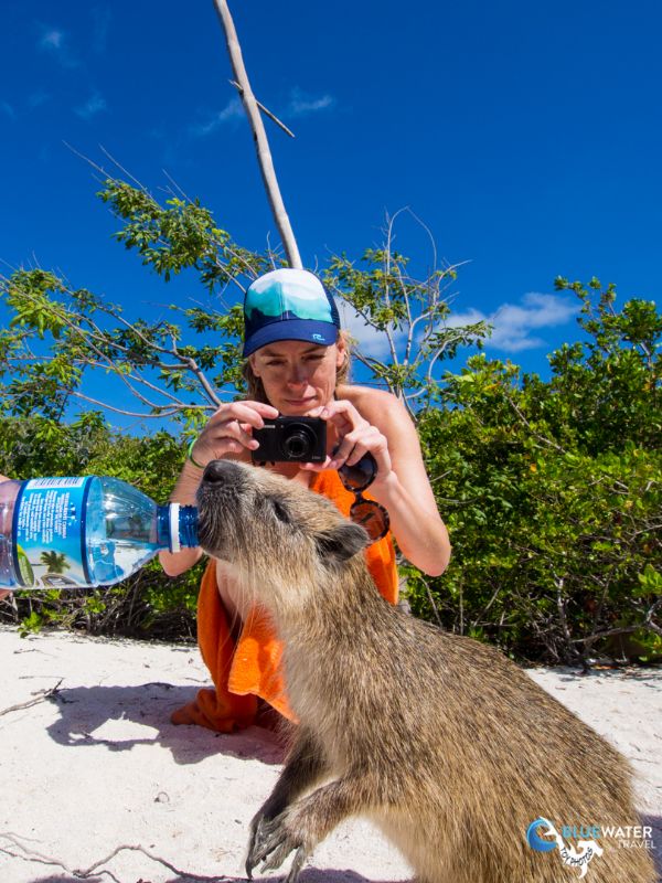 After an hour surface interval, we headed back out to the reef for Dive 2 and then to a beach that was inhabited by igunas and hutias, a rodent that are scarce in Caribbean islands but are flourishing in Jardines de la Reina. These cute mammals are used to human interactions and approach our csmeras while we feed them pieces of papaya and water straigh from the bottle.