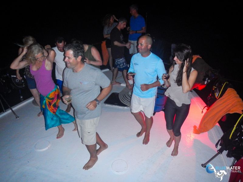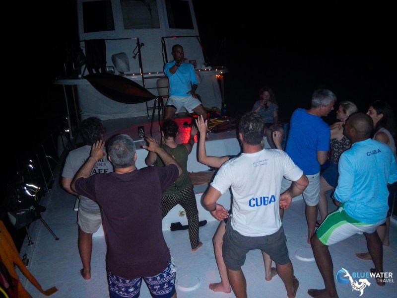 After dinner, the crew and our group sat around the dining table with rum and cigars until we decided to move to the bow, where there was more room for some dancing under UV lights.