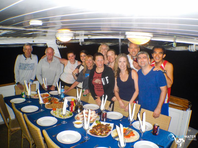 After we set up our gear in the speedboat tender, we set off for our checkout dive. The diving was very easy with barely any current. We dropped down onto the reef at about 30 feet and swam down to 60 feet. The highlight of this dive was a large remora that followed us for half of the dive, swimming from diver to diver and often bumping into our cameras.Dinner was a sumptuous meal of lobster, fish, and chicken. Most of us called it an early night after dinner.