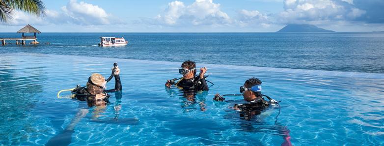 There are a lot of great dive resorts in Manado (Sam Ratulangi International Airport – MDC) & Bunaken. For diving, we recommend visiting more than one area on your trip. If you’re diving Manado and Bunaken, save a few days to explore the famous Lembeh Strait. Along the way, if you have time, consider stopping at Bangka Island or Gangga Island to round out the underwater offerings of the area. Many people say the combination of these dive spots is unparalleled, and visitors often return frequently.y.