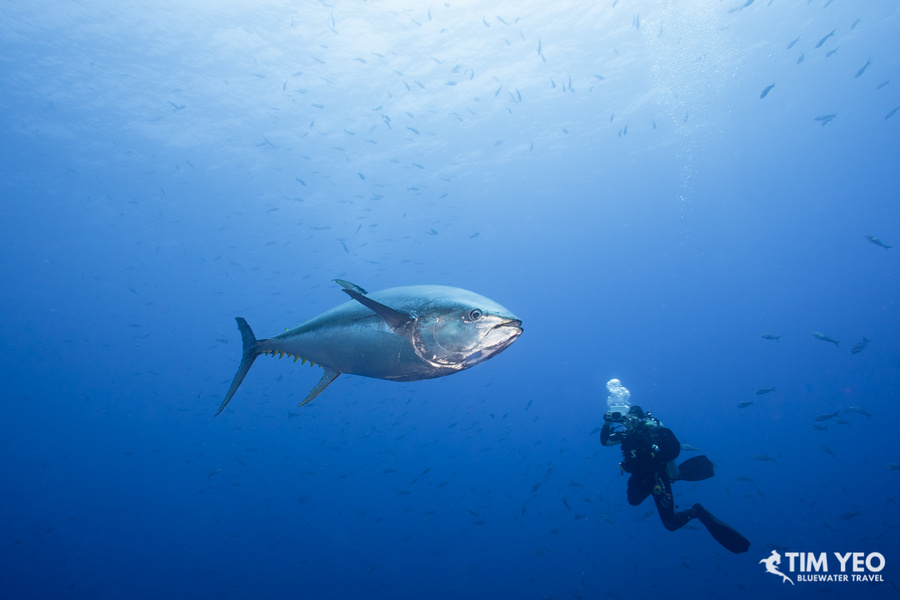 We stayed for another day of diving at Cabo Pearce and what a great decision that was. Visibility had cleared up, and over the four dives, we had very interactive mantas and also saw bottlenose dolphins, silky sharks, and yellowfin tuna.