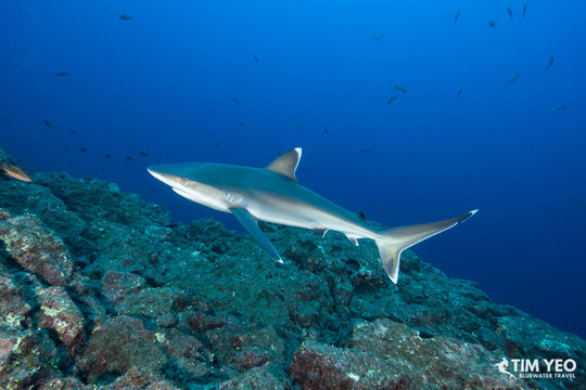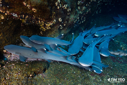 Today we dove one of the most famous dive spots in the world... Roca Partida. We awoke in the morning and, very much to our surprise we were the only boat around! We had the entire dive site to ourselves! During the three dives, we saw hammerhead sharks, large 300+ pound yellowfin tuna, dozens of silky sharks hunting a massive school of bonito, large Galapagos and silvertip sharks, wahoo, and the much-photographed shark caves filled with white tip reef sharks.