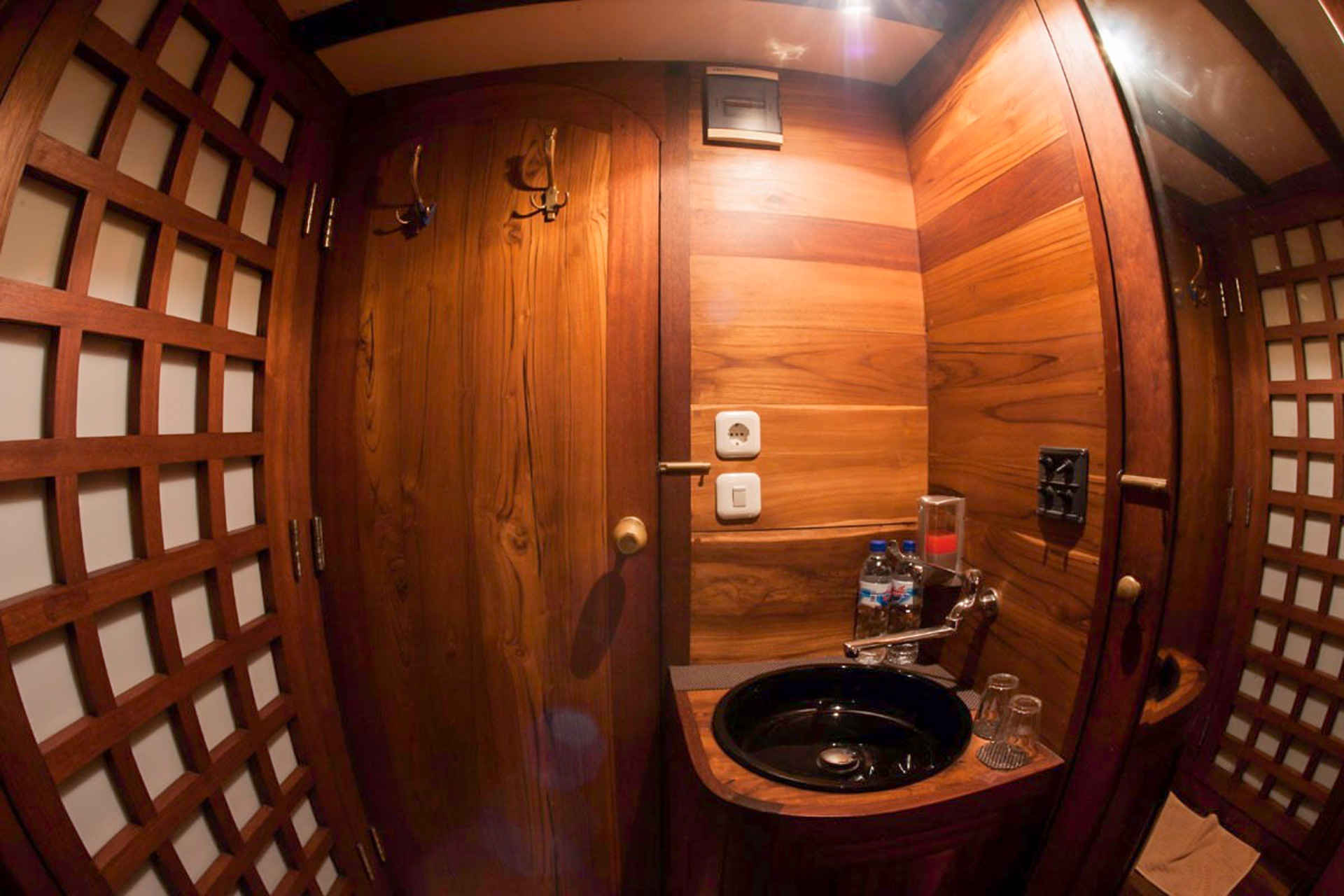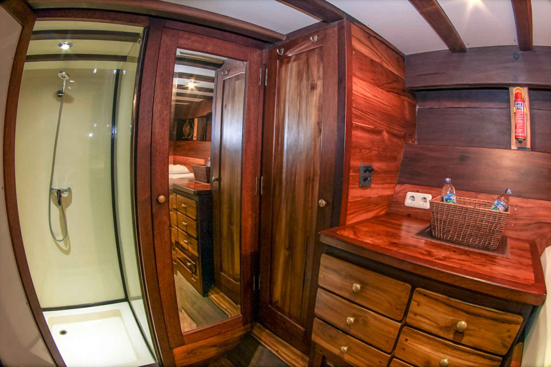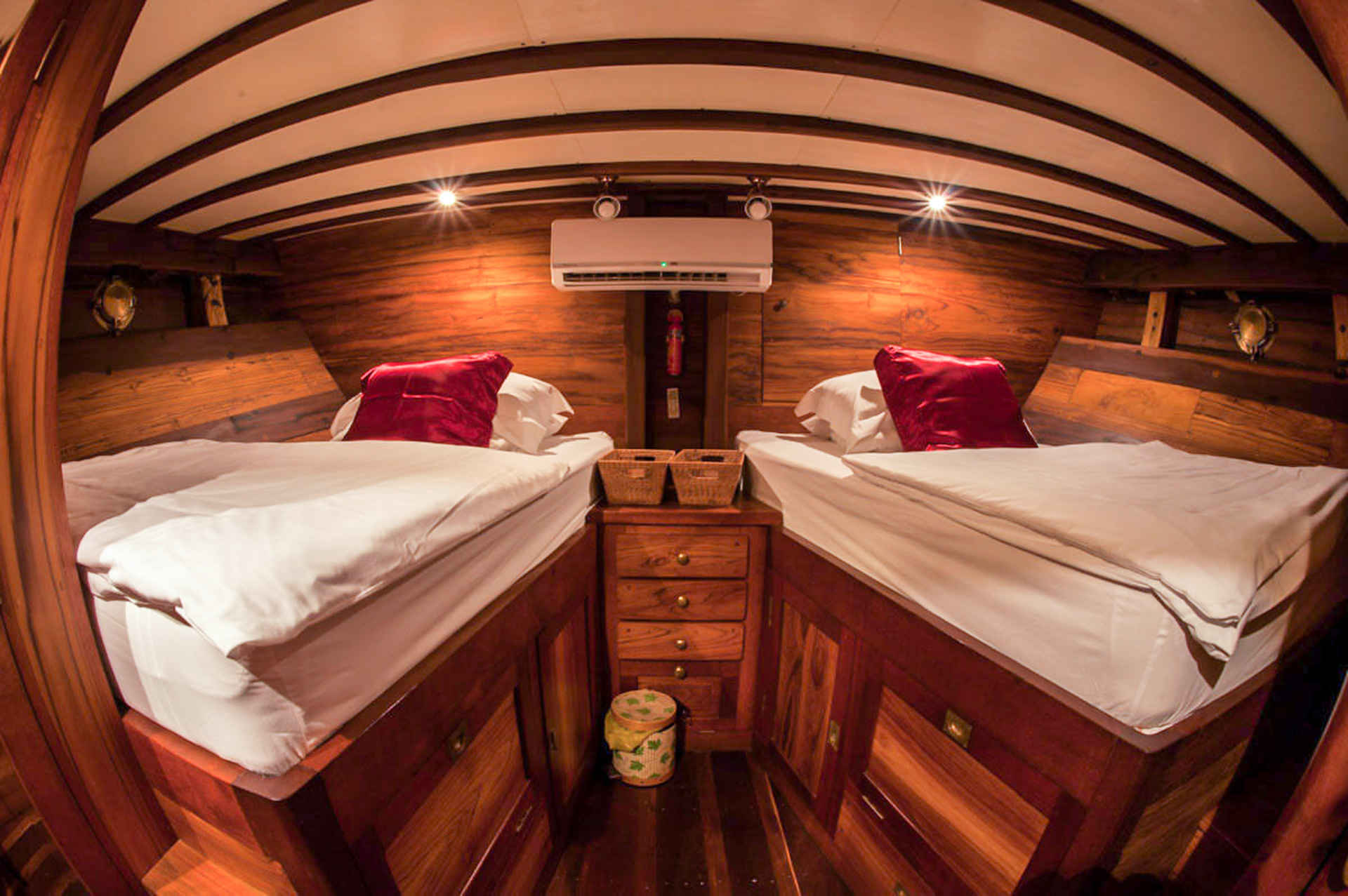 EcoPro Duyung Baru features four well-appointed cabins, each designed to provide comfort and tranquility for guests during their liveaboard experience. The cabins are equipped with individual air conditioning units, ensuring a pleasant environment in the tropical setting of Komodo, Indonesia. The vessel's commitment to an intimate experience is reflected in the limited occupancy of eight guests, allowing for personalized service and a sense of exclusivity.