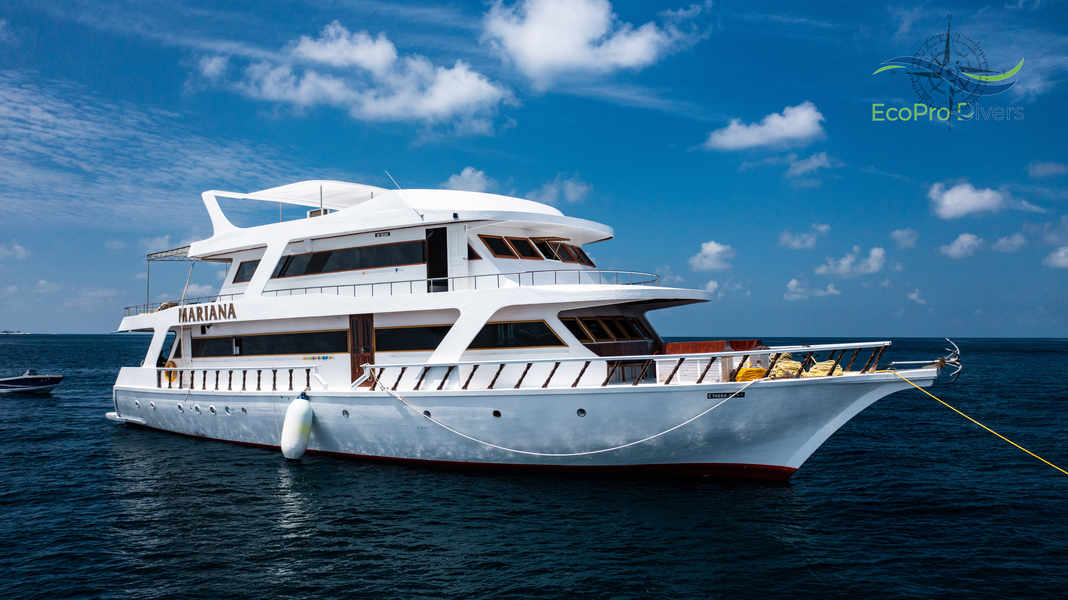 EcoPro Mariana is a modern liveaboard in the Maldives, accommodating up to 20 guests, offering eco-friendly diving adventures to explore vibrant coral reefs and marine life.
