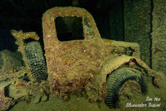 The highlight was the SS Thistlegorm, one of the most famous wrecks in the world. The Thistlegorm was a WWII freighter that was carrying all sorts of military vehicles like lorries, trucks and motorcycles when she was bombed by German bombers. The bombing set the wreck ablaze, but it wasn't until the fire spread to the ammunition hold that blew the ship in half and sank the Thistlegorm in under a minute.
