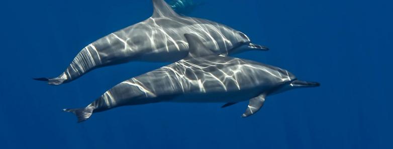 Rangiroa scuba diving offers encounters with dolphins, gray reef sharks, and silvertip sharks. They also have schools of jacks and barracuda, eagle rays, turtles whitetip and blacktip sharks. Manta Rays are sighted occasionally. Visibility is excellent. The bigger sharks can be quite deep, 35 - 50 meters deep. Macro life is limited. In a week stay, you can usually get dolphins to make a few close passes, and they have been known to play with divers.