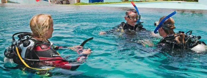 Emperor Divers Laamu offers all-year-round diving with rental equipment, nitrox, steel, and aluminum cylinders, storage, rinse facilities and classrooms. Their daily dive boats are just a 5-minute walk away; they have your needs covered so you can enjoy easy diving from your first day. As a PADI 5 Star Instructor Development Centre, they also offer a full range of courses from Learn to Dive to Open Water, Advanced and up to PADI Instructor training.