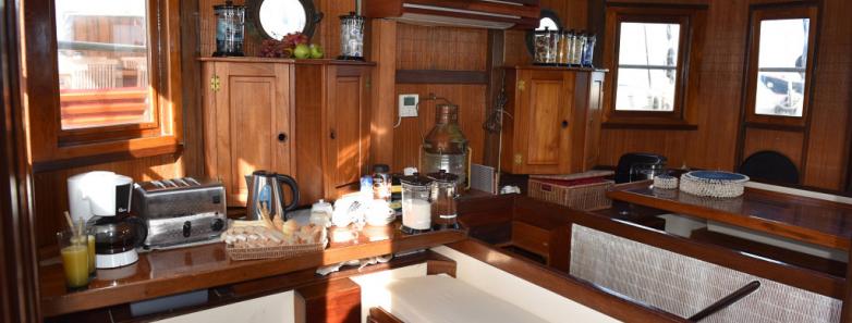 The meals onboard are usually buffet style with a variety of Indonesian and International dishes to suit everyone. Indonesian food is traditionally a bit spicy, fish is available on-board, mostly frozen with a few fresh catches along the way. Water, tea and coffee and are complimentary. Soft drinks, fresh juices and alcohol (cocktails, spirits, wine and beer) are chargeable. Alcohol is available to purchase on board and guests are welcome to bring their own alcohol onboard.