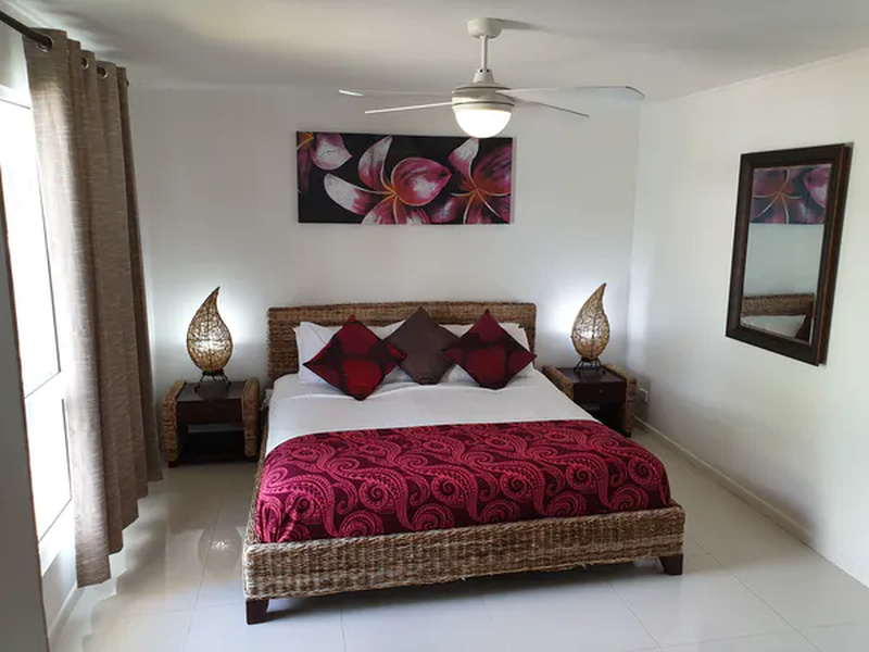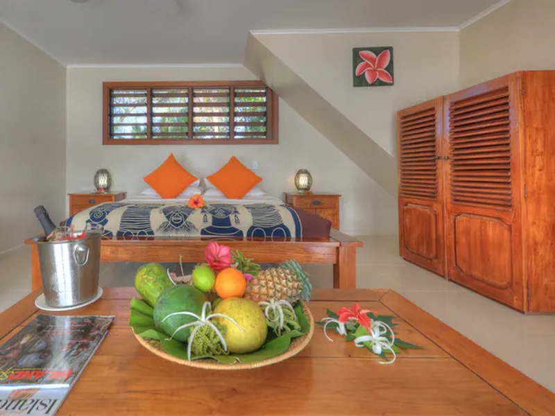 Discover the Garden Room, featuring ensuite bathrooms and tea/coffee facilities. Enjoy the spacious outdoor nakamal and breathtaking pink Erakor sunsets.