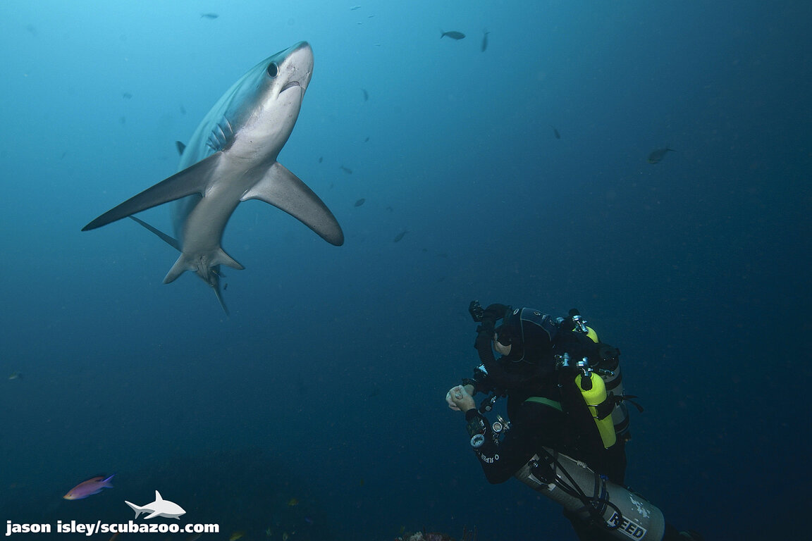 Evolution is the leading specialist for Thresher Shark encounters in the world. Like all dive shops, we bring our recreational customers to see the Thresher Sharks in the morning. However, we are the only dive center capable of bringing our customers to see the Thresher Sharks at depths ranging from 30 meters to 100 meters. Evolution has logged hundreds of shark sightings at various depths including a recent and incredible encounter at 100 meters during an Advanced Trimix Dive.