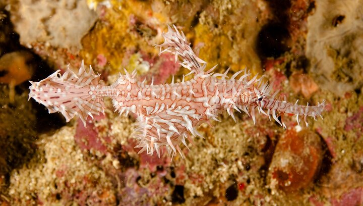 - Dive Evolutions House Reef - The house reef is one of the best muck dives in the country. Just 3 minutes from the beachfront is an incredible array of macro delights. Here we repeatedly see pairs of Crinoid Squat Lobsters and Imperial Shrimps. At dusk, dozens of Bobtail Squid appear. Coconut Vein Octopi are regulars and we find seahorses on every dive. Snake Eels poke their head from the sand and Stargazers make occasional appearances too. Robust Ghostpipefish and an array of Mantis Shrimp species are also part of the Evolution House Reef experience. And thats just for starters.