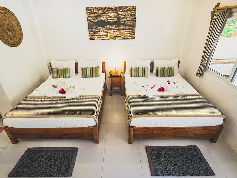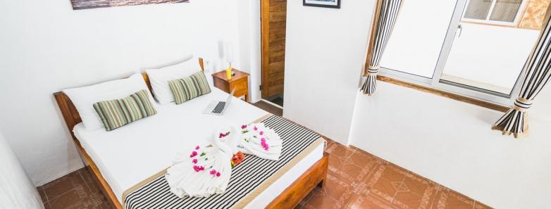 Discover our newly constructed rooms, just 75m from pristine white sands. Enjoy handcrafted mahogany beds, spacious bathrooms, AC, and personal terraces at an affordable price!