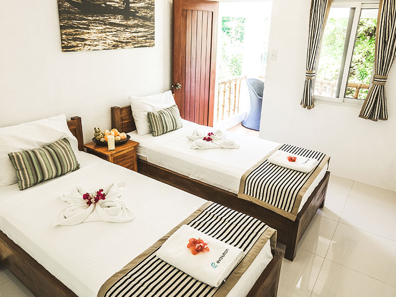 Evolution Diving Resort has developed some of the best value rooms on Malapascua island. All rooms have complimentary drinking water and personal terraces, just meters from the beach, restaurant and dive shop.