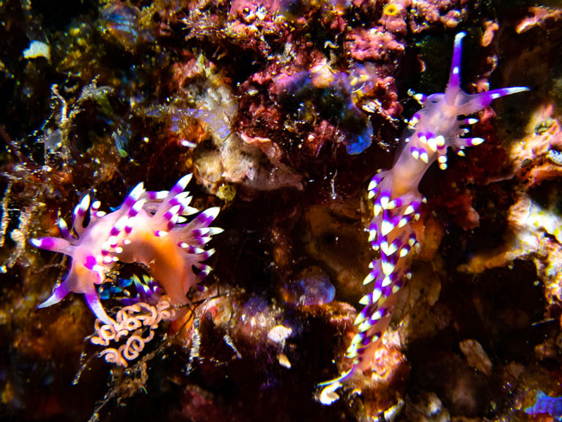 Two Flabellina (Flabellina exoptata) nudibranch with eggs. Photo by Melissa Foo