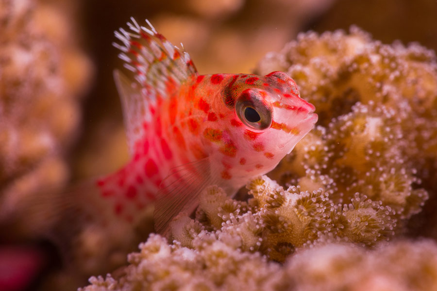 (L) Whale Shark at Bahia de los ngeles. Photo by Justin Knittel. // (M) Christmas Tree Worm (Spirobranchus giganteus) Photo By Steve Zimmerman. // (R) The Spotted Hawkfish (Cirrhitichthys oxycephalus) is also known as the Pixy Hawkfish. Photo by Lee Duckwall.