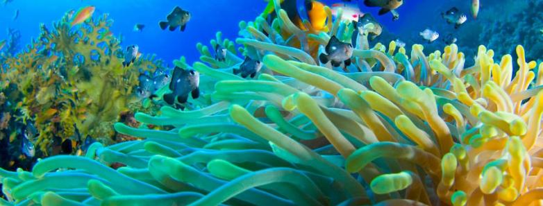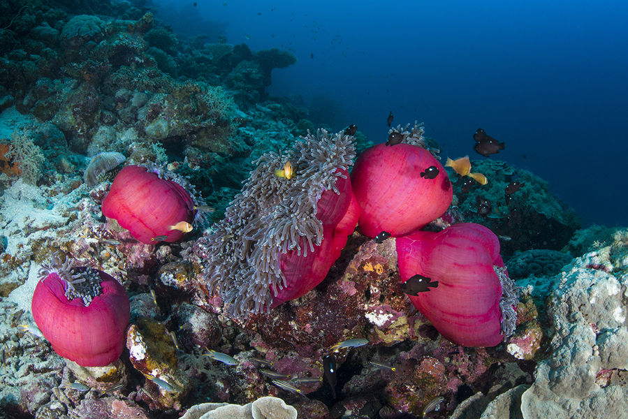 Reefs with manta rays and reef sharks, but also stingrays, guitar rays, leopard sharks and a variety of critterstypical for Indonesia invite you to unforgettable dives. Not only the underwater photographers will appreciate the big, colorful fields of soft corals in the north of the Maldives, but all divers will.