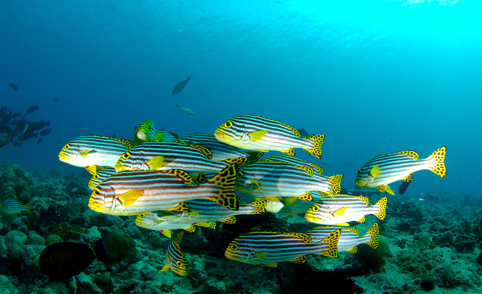The quantity and diversity of marine life at Haa Dhaalu is the star attraction of every guest's Maldives vacation. Diving here is very much about the pelagics, principally sharks, and if you have an innate fear of them then this is the perfect opportunity for in at the deep end therapy. This is one of the only places in the world we know where you are guaranteed close encounters with burly and reclusive sharks, along with droves of the more common grey reef and black-tip reef shark.