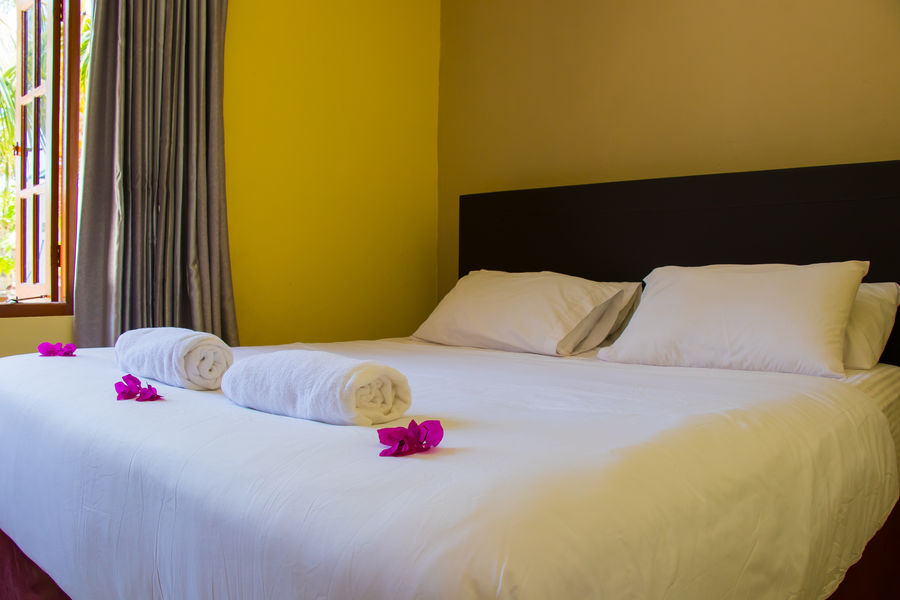 Relax in our Double Deluxe Room featuring a queen bed, mini-bar, coffee maker, air conditioning, and a serene garden view for ultimate comfort.