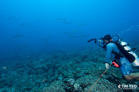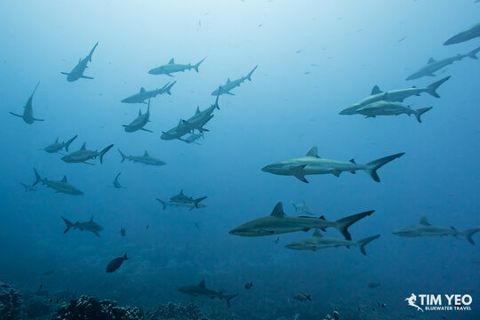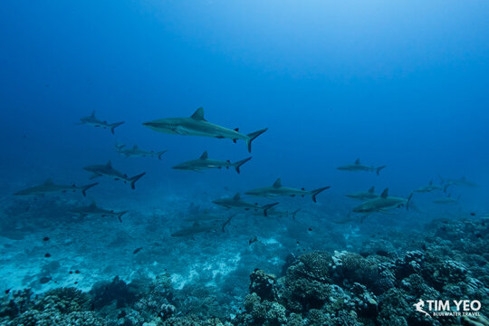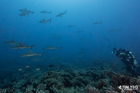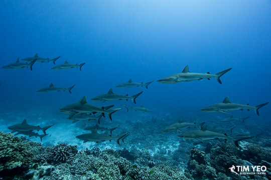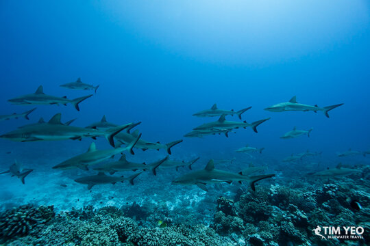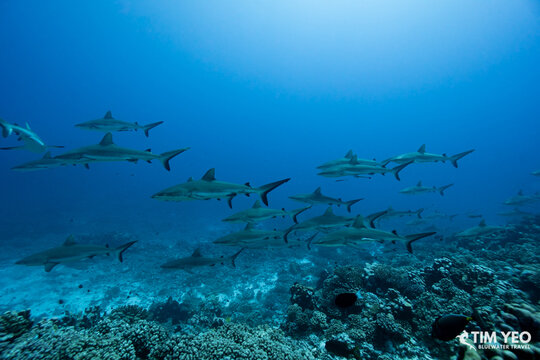 Arguably having some of the best diving in French Polynesia, the remote island of Fakarava supports an immense number of sharks. Diving in Fakarava is centered on two passes: the north pass and the south pass. We choose to dive the south pass, which is consistently packed with grey reef sharks offering high adrenaline dives.