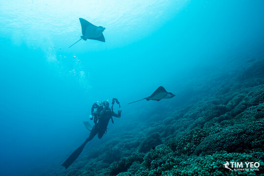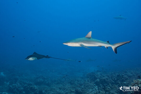 However, it is not all about the sharks in Fakarava. There are also eagle rays, and the coral reefs are very healthy and support a wide variety of marine life.
