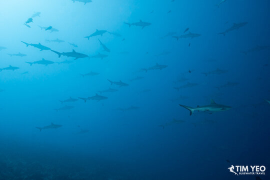 Divers can either drift along the pass or hook onto rock and enjoy the shark show.