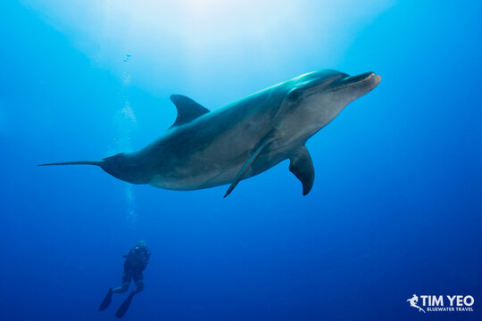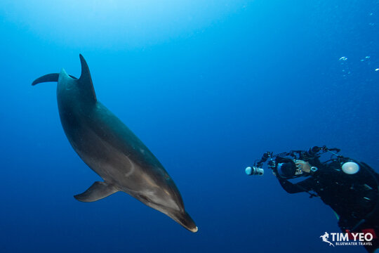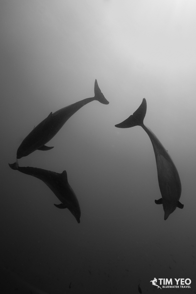 However, the one marine mammal that steals the show in Rangiroa is the resident pod of bottlenose dolphins. They seek out divers and actively interact with them.