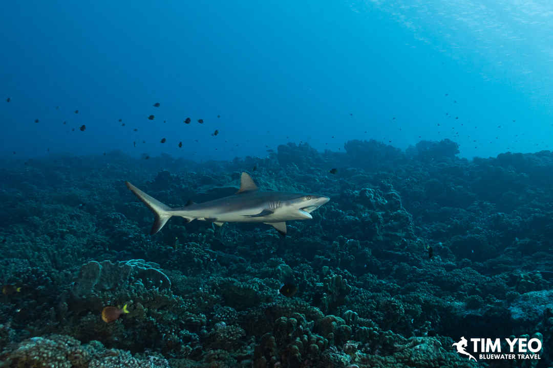 Our final diving day in Fakarava did not disappoint. Throughout our three dives, we encountered thousands of snappers red, paddletail, blue-striped and soldierfish. Of course, the ever-present sharks remained the main attraction. The second dive was a particular highlight as we drifted amidst a swirling cloud of these magnificent creatures.