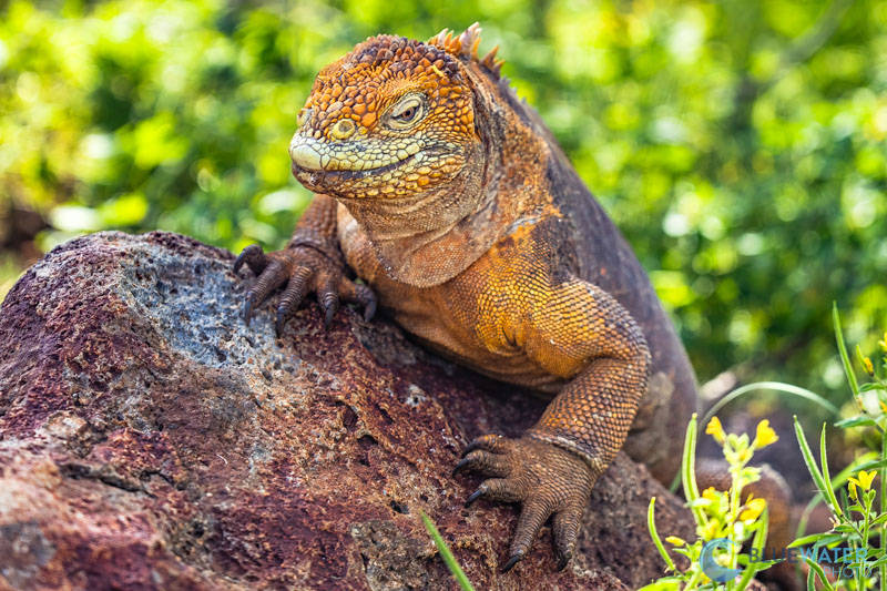 The Galapagos Master at Punta Vincente Roca - Home of the Mola Mola (L). A Land Iguana at North Seymour Island (R)