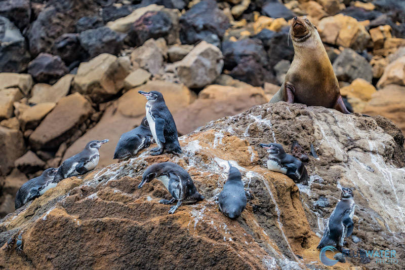Galapagos Sea Lions and Galapagos Penguins Coexisting