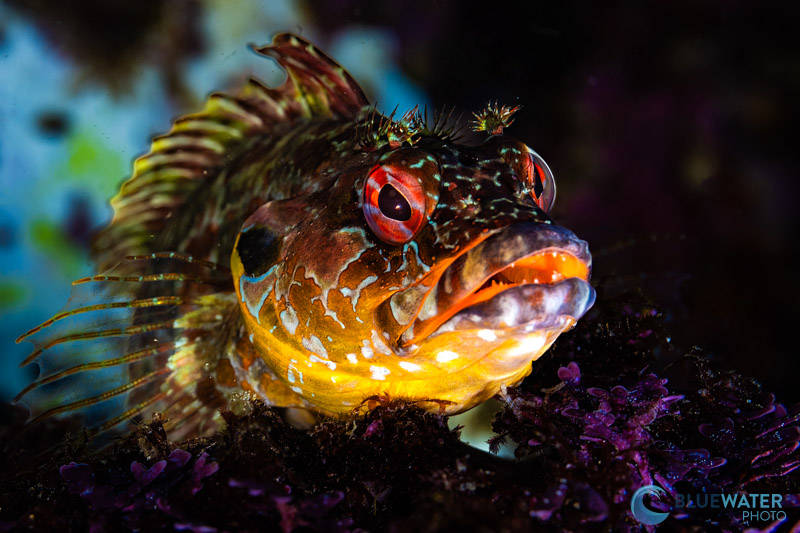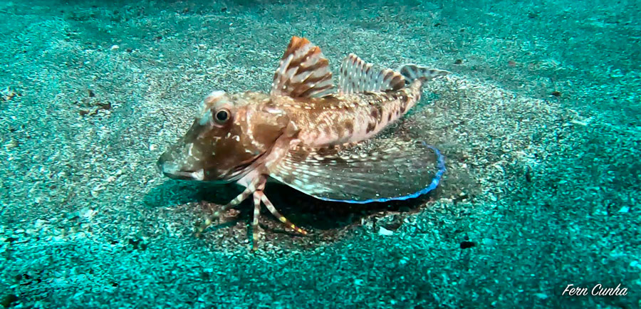 Harlequin Wrasse (L), A sea robin photographed by Fern Cunha with her trusty GoPro & A red-lipped batfish photographed by Bill Maki (R)