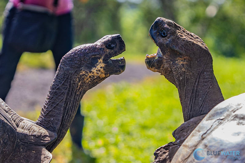 Two male tortoises fighting (L) & A large male tortoise in the highlands of Santa Cruz Island (R)