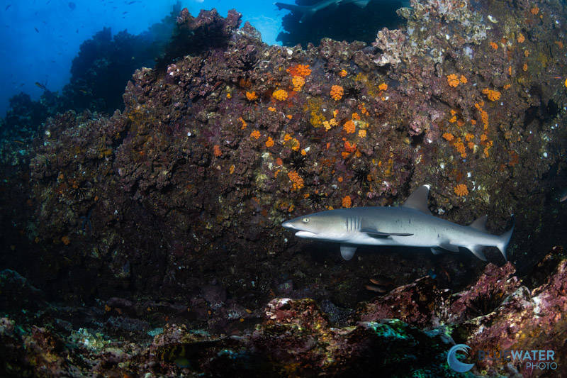 Our final dive of the trip might just have been the best dive of the trip. What started out as a slow meander along the steep wall of a remote rock off of Santiago Island, quickly turned into an action-packed dive! Along the wall, we witnessed multiple white-tipped reef sharks as well as a couple of seahorses!