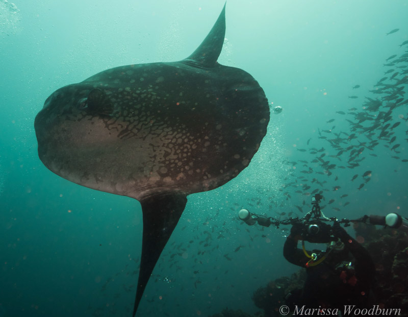 There is one funny story from this day - on our first dive, we were separated into 2 Mola-hunting groups, and I was with the first group. We did find some Molas, and then we left the area, passing the 2nd group. Now the 2nd group all saw me swim by, and they thought they would not see me again. But - unbeknownst to them, I doubled back, and went deeper looking for Mola mola for them. I found two of them, and the group saw me "rise up from the depths" with a huge smile on my face , arms waving, pointing my arm and giving the Mola sign. The group did then see the Mola, to their utter joy, but they were completely flabbergasted regarding where I came from, and we all had a good laugh about it on the boat.