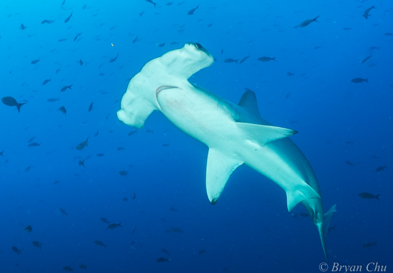 One humorous story from the trip concerned a guest whom I was escorting on the dive to put him in the perfect "hammerhead" spot. Sure enough, a hammerhead went right over his head, but he was looking at his camera. He later said he was playing Tetris, instead of looking for sharks, and sure enough the boat was filled with Tetris jokes for the next couple of days. We even instituted a "No Tetris Underwater" rule! It is also worth mentioning, that several of us joined the DPSS (Dome Port Scratch Society) at this location.