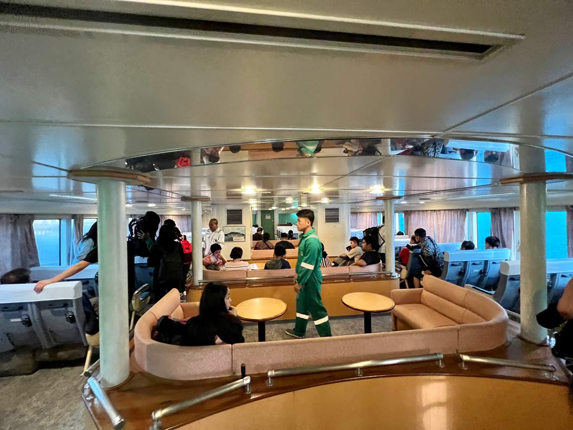 Boarding the ferry was very easy. There are also porters around if you need help bringing your bags from the gate to the ferry. The ferry has AC, male and female restrooms, and seats are assigned with your seat number on your ferry ticket.