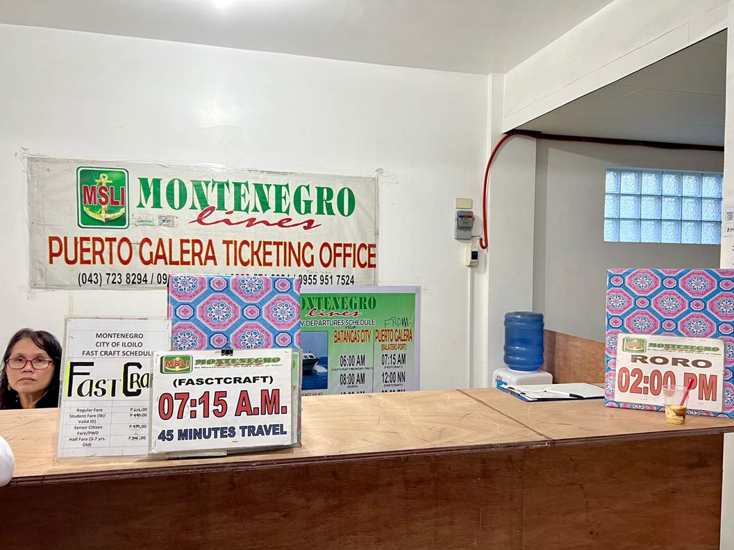 Avoid the porters swamping the bus as you disembark unless you want some help carrying your bags to the terminal. I walked 2 minutes to the Batangas ferry terminal and purchased a 10 am ferry ticket to Puerto Galera with Montenegro Lines. There is also another ferry company called Island Water, but their 10 am ferry is a slow ferry (RORO ferry).