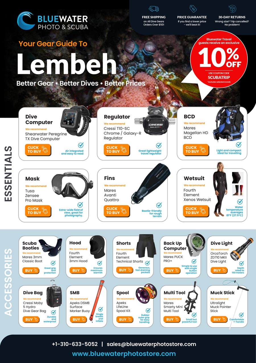 Download our full scuba gear guide to Lembeh, Bluewater Travel guests receive 10% OFF!