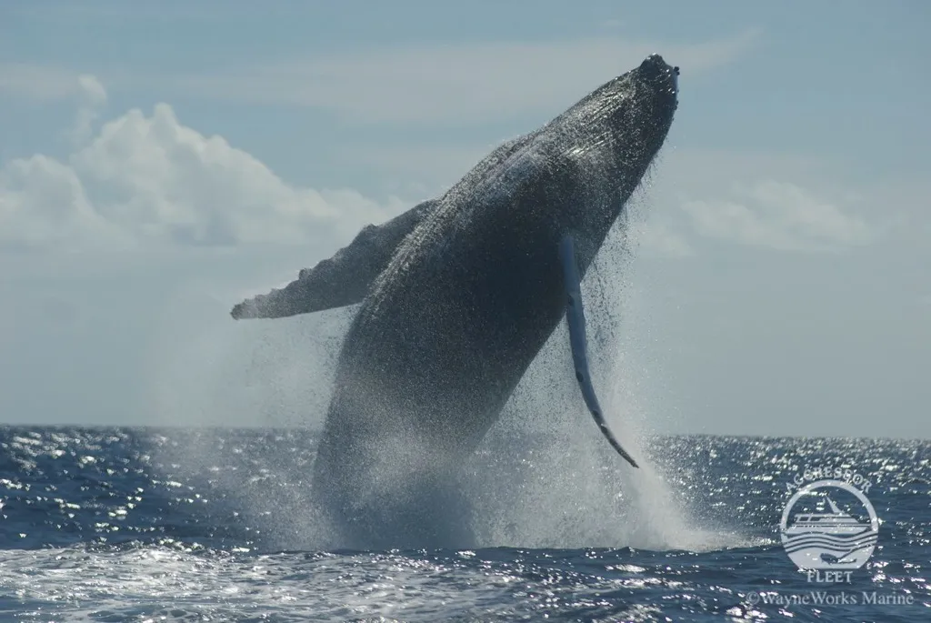 As you can tell, Silver Bank is all about the whales. This underwater haven becomes a stage of wonder and awe from January to April as these colossal creatures grace its waters. The Silver Bank's tranquil expanse serves as a vital winter refuge for the North Atlantic humpback whale population, where they gather in the thousands for courtship, mating, calving, and nurturing their young. Amidst the turquoise currents, one can witness a mesmerizing symphony of behaviors, from the exhilarating breaches and resounding tail slaps to the graceful waving of pectoral fins.