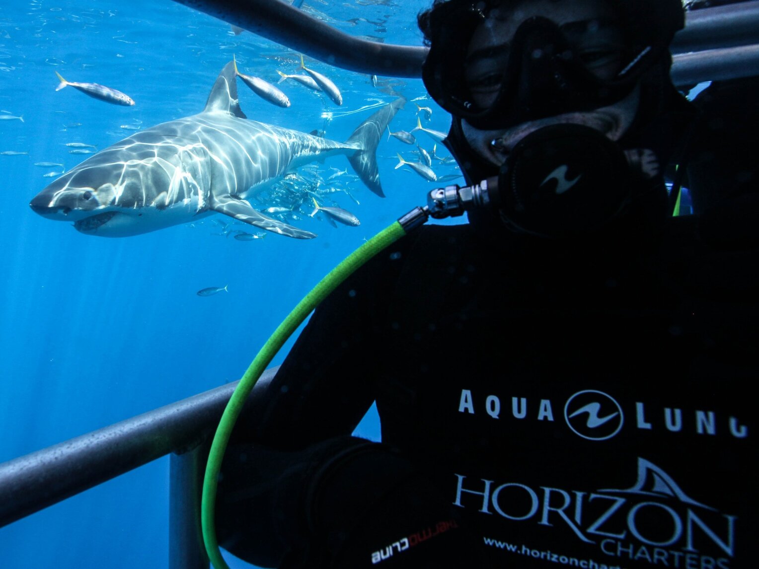Shark cage diving, it really is as thrilling as it looks! You have always wanted to experience the worlds top white shark cage diving destination at Guadalupe Island, and now you can for less than you imagined. Face off with great white sharks on Americas Shark Boat, the MV Horizon.