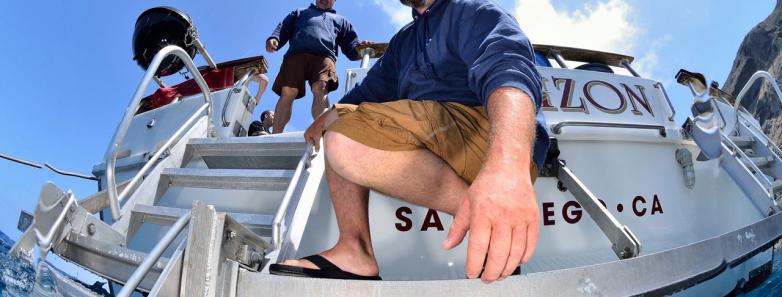 - On Day 4 we depart shortly after lunch for San Diego. This is your last chance to say goodby to our great white shark friends, and for your last cage diving moments at the island. Be sure to have your cameras ready as we pass the famous Shark Fin Rock on the way back. Adios Isla Guadalupe!