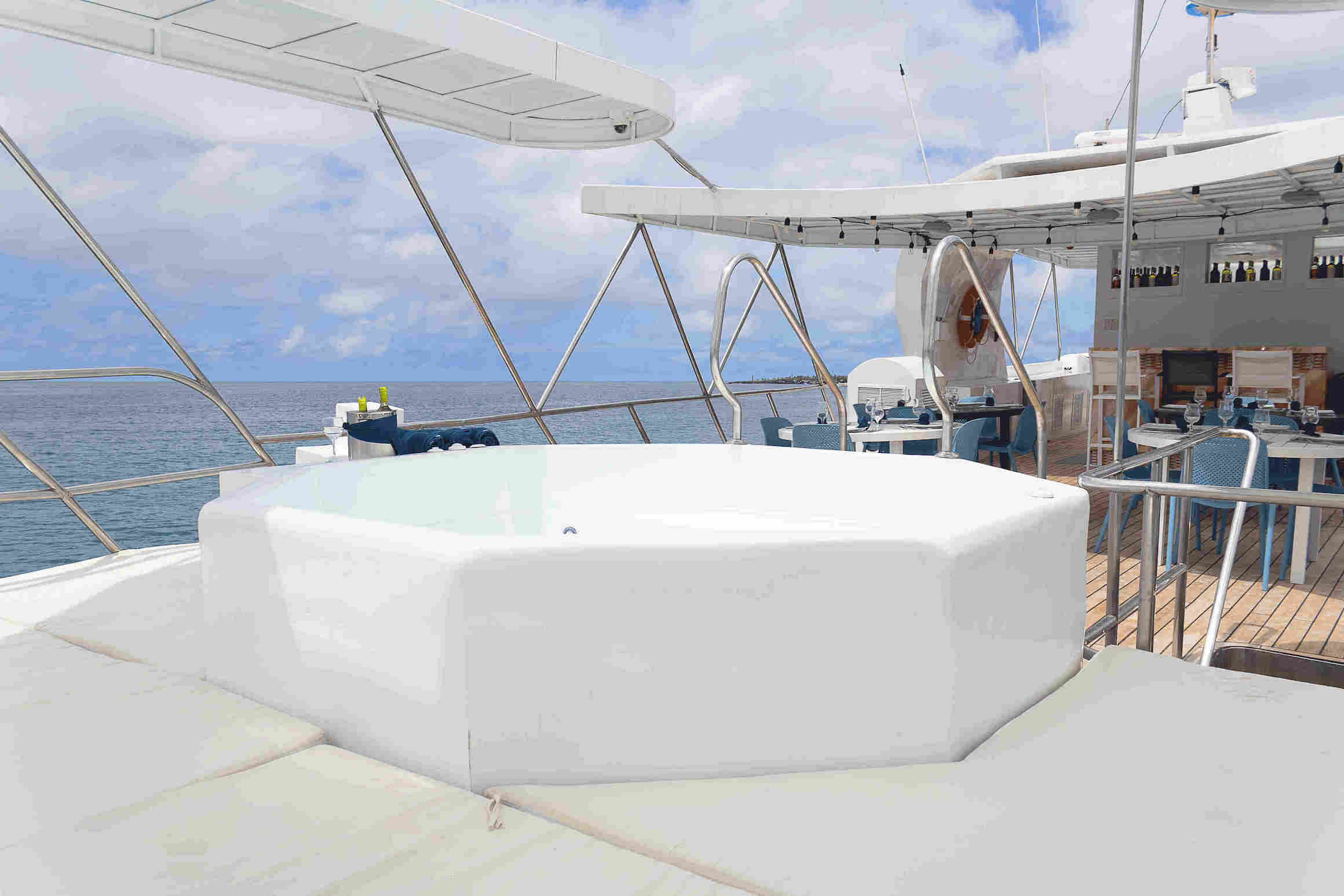 The 16-passenger Humboldt Explorer provides 8 air-conditioned rooms located on the main and lower decks; each has a private bathroom, flat screen television and ocean view. All rooms except rooms 3 & 4 (forward below deck) can be converted to either one queen bed or two twin beds.