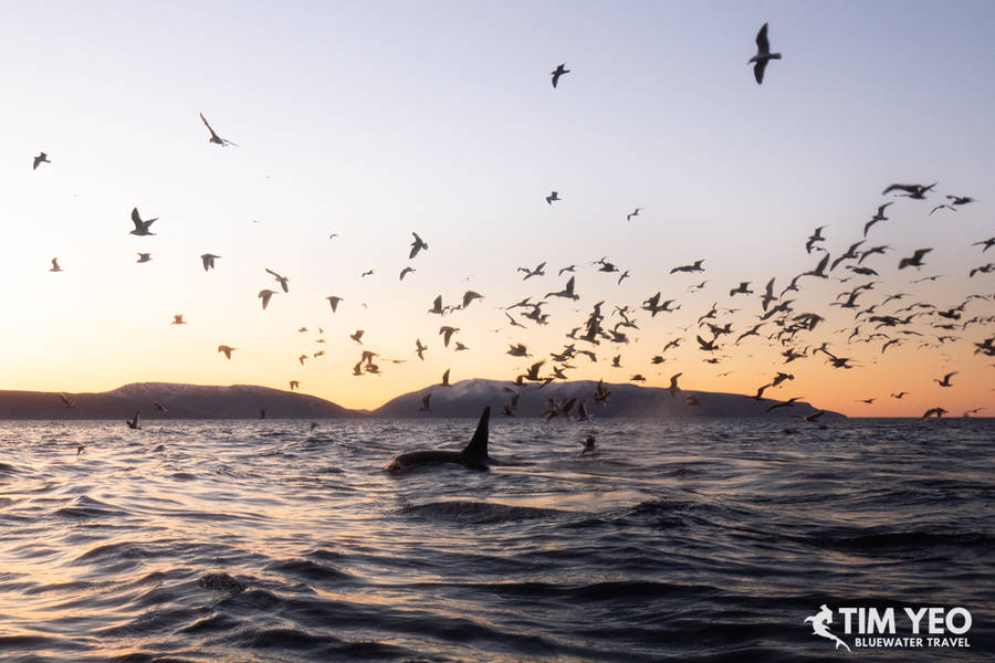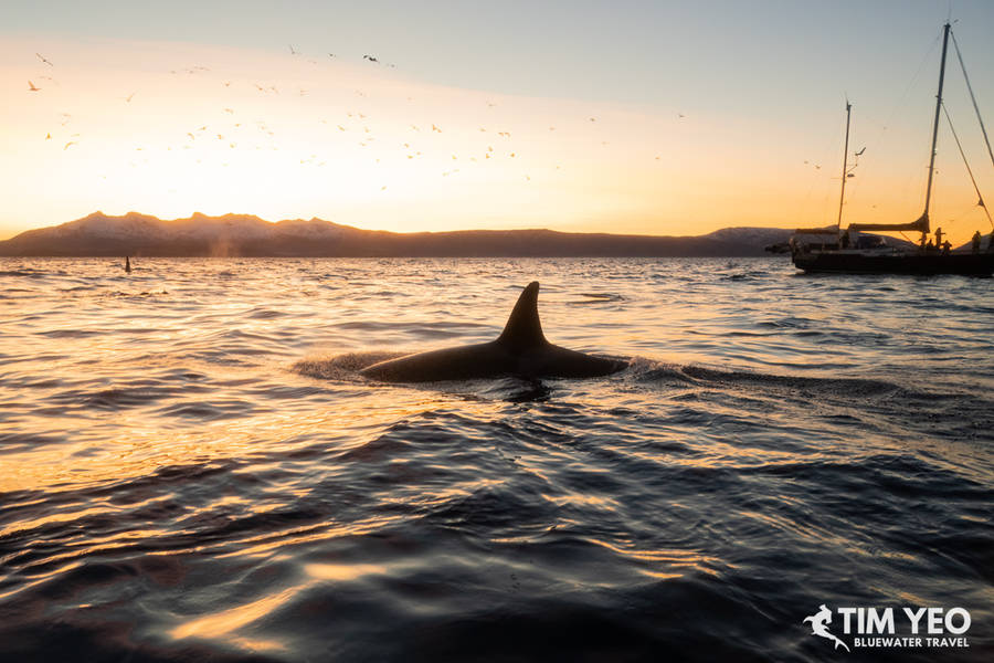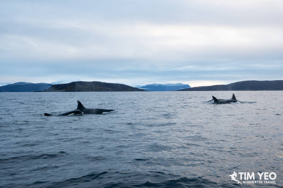 After 2 days of orcas eluding us, we set off again on Day 4 on the Maroy and headed further north out of the fjord. There werent any signs of orcas for the first couple of hours until we found a few orca pods near the tiny fishing village of Arviksand. We managed a few drops and everyone had incredible encounters with orcas.