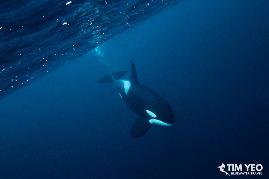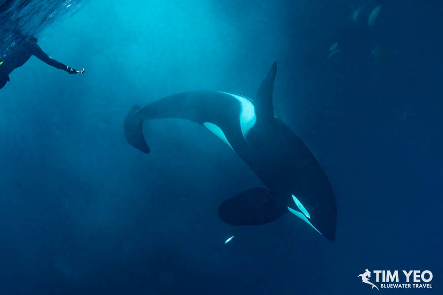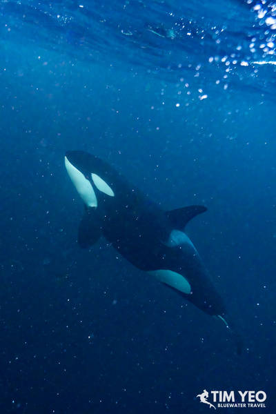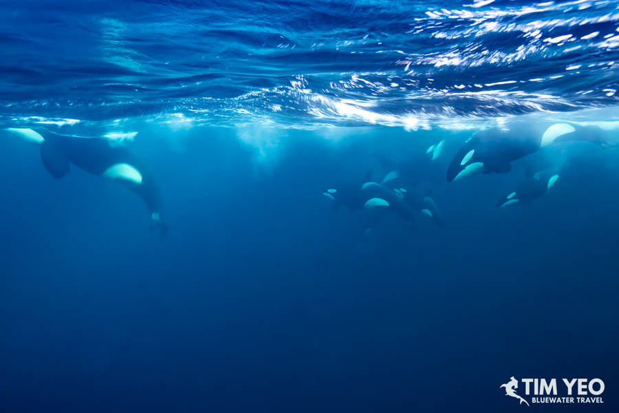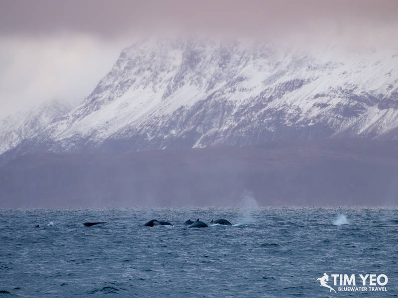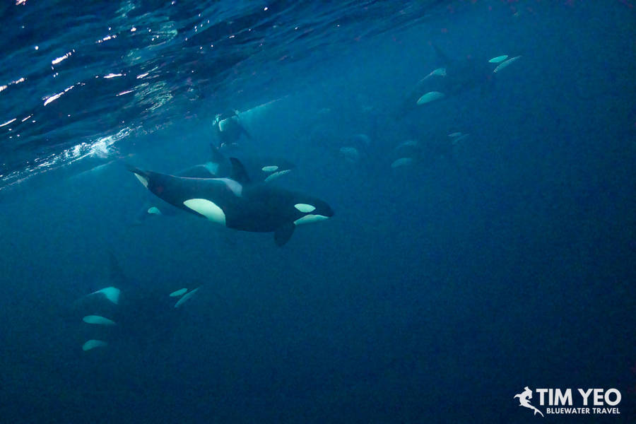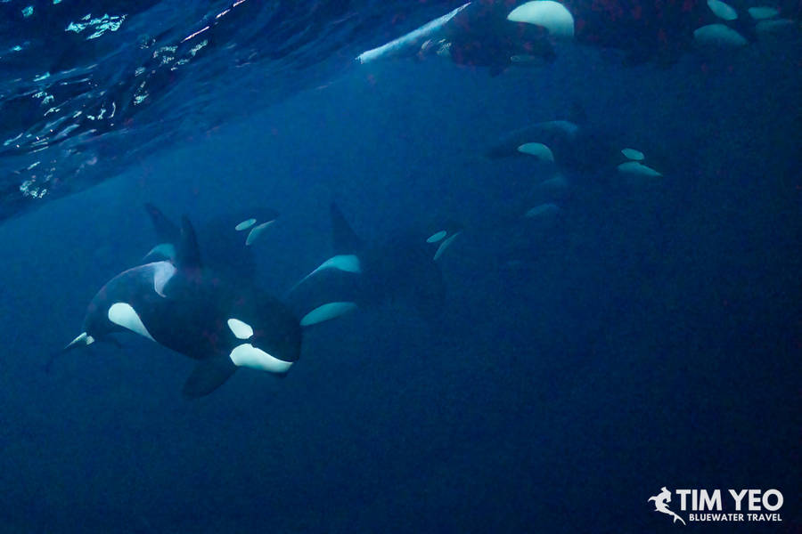 Because Day 4 was so good, the expectations for Day 5 were high. There were also reports that orcas were still in the area. The Maroy left port at sunrise and we immediately found a hundred humpback whales and orcas in the area. With not too many boats this far north, we spent the entire daylight hours jumping in and out of the water catching glimpses of orcas.