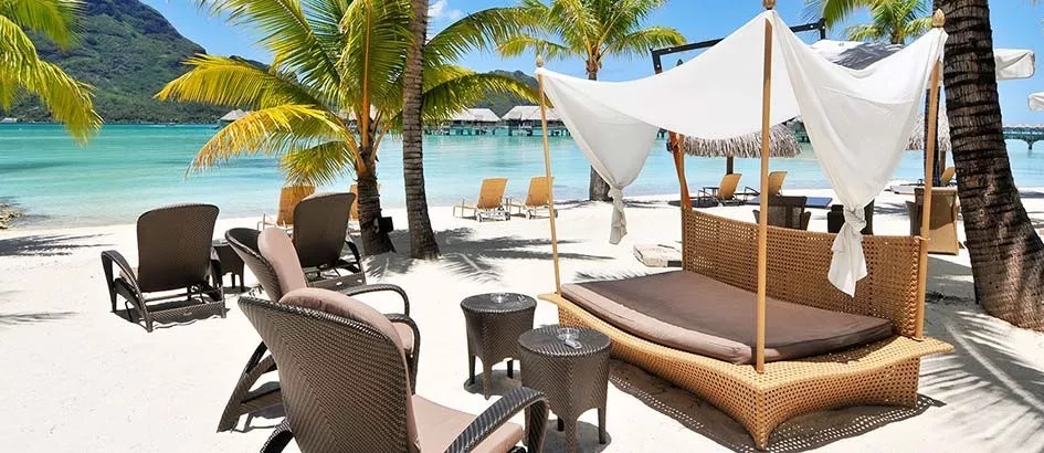 The InterContinental Bora Bora Resort & Thalasso Spa is situated on a pristine beach on the Motu Piti Aau. You can find them along the eastern side of Bora Bora, accessible exclusively by boat. The central location makes direct airport transfers convenient (the trip takes only 20 minutes) to and from the main island of Bora Bora. They also offer a boat transfer to the InterContinental Bora Bora Le Moana Resort, located on Matira Beach.