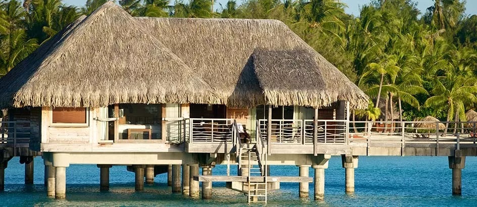 The 80 spacious overwater villas are decorated in a sleek, contemporary island style, with touches of traditional Polynesian design creating a comfortably chic appeal. Measuring 95 square meters (1,022 square feet) each, including a 30-square-meter (323-square-foot) terrace, all overwater villas share the same layout, differing only in position and view. Each features a spacious furnished sundeck with outdoor freshwater shower, a shaded area and a sundeck with direct access to the water. Indoors, youll find a comfortable bedroom and living room complete with a glass-bottomed coffee table that acts as a window to the lagoon and the fishes below. Each bathroom features a double vanity, a shower and a separate bathtub that faces a picture window, showcasing wide lagoon views. All villas are cooled via our eco-friendly, state-of-the-art, deep-sea water air-conditioning system, with additional ceiling fans to enhance the circulation of fresh lagoon breezes.